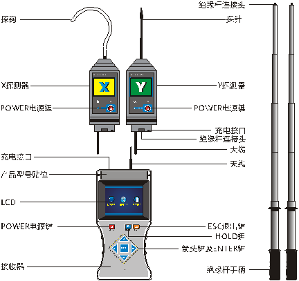 YTC6220 高壓無線核相儀又名全智能無線高壓語音核相儀、無線高壓核相器,簡稱核相儀或核相器,由無線接收器、探測器、伸縮絕緣桿等組成。接收器采用3.5寸真彩液晶屏,同屏顯示核相結(jié)果、相位、頻率、向量圖指示,有“X信號正常、Y信號正常、同相、異相”等語音提示,清晰直觀??諘绲孛婧讼嗑嚯x可達(dá)1000m遠(yuǎn),能對10V~550kV的電壓線路全智能核相,其中35kV及以下的裸導(dǎo)線可以直接接觸核相,35kV以上的裸導(dǎo)線采用非接觸式核相,非接觸核相是將探測器逐漸靠近被測導(dǎo)線,當(dāng)感應(yīng)到電場信號時就可以完成核相,這樣無需直接接觸高壓導(dǎo)線,更加安全!本核相儀同時具有高壓驗電器、高壓相位表、高壓相序表的功能,可以用于驗電、相序測試,變壓器組別判斷等。