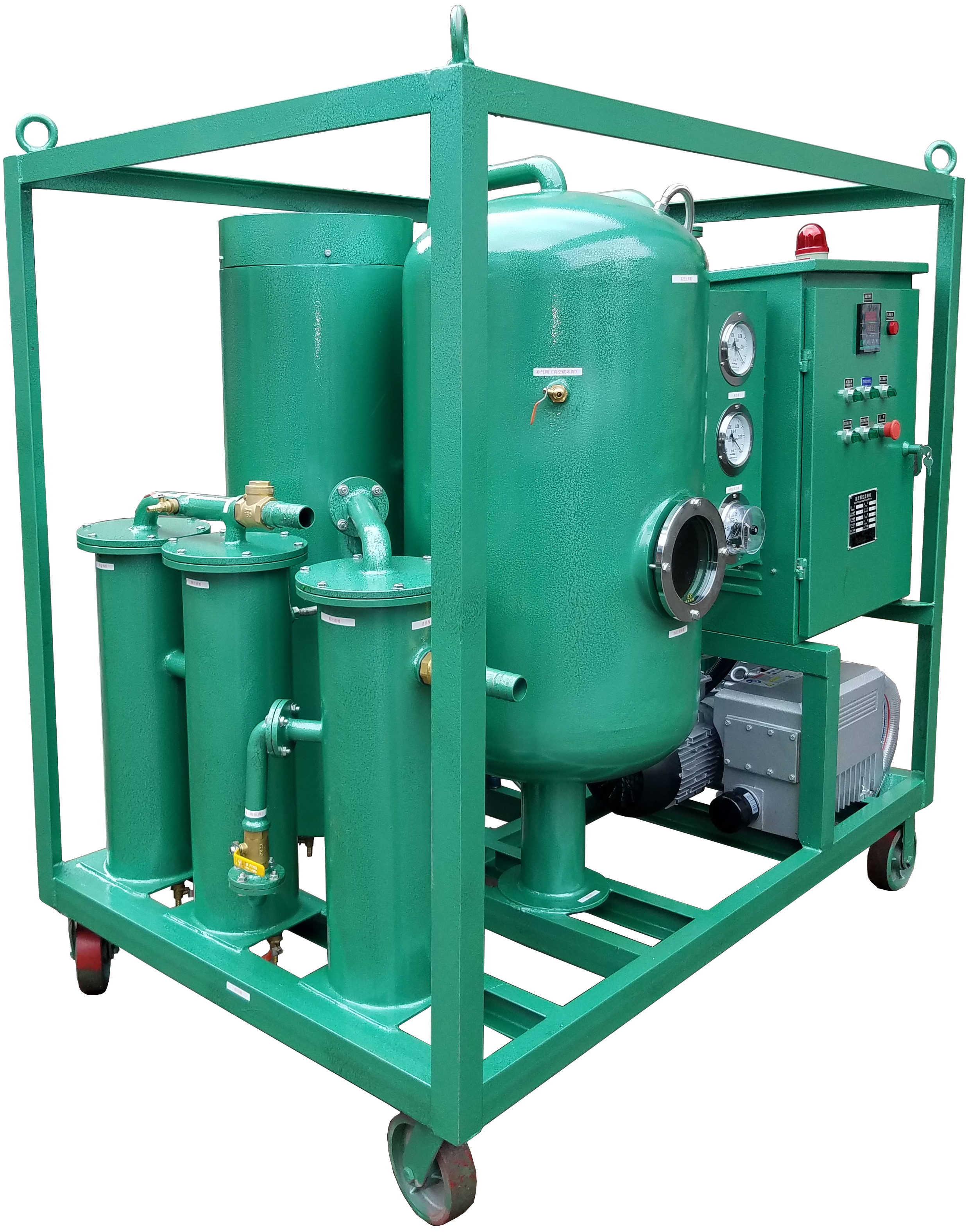 真空濾油機(jī)廣泛應(yīng)用于各個(gè)行業(yè)中的油液循環(huán)系統(tǒng),如輪船、汽車、航空、冶金、化工、電力等領(lǐng)域。在這些領(lǐng)域中,油液起著重要的絕緣、密封和冷卻作用,而油中的固體雜質(zhì)和水分會導(dǎo)致效果下降,甚至損壞設(shè)備。因此,使用真空濾油機(jī)對油液進(jìn)行定期的過濾和凈化是必要的。