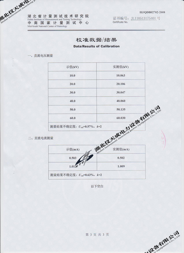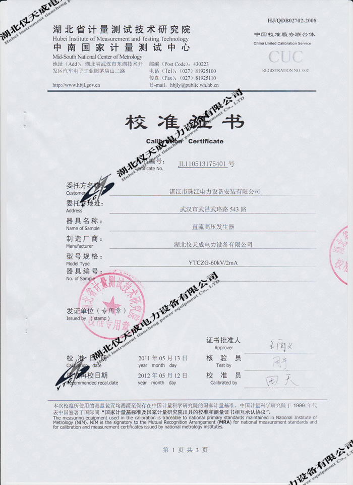 轉(zhuǎn)載:"YTCZG-60kV/2mA直流高壓發(fā)生器的資質(zhì)證書(shū)" 請(qǐng)注明來(lái)源于儀天成電力。 更多技術(shù)問(wèn)題請(qǐng)致電儀天成電力客戶服務(wù):027-87876585,技術(shù)部專線:027-87876585,在線客服:719388481